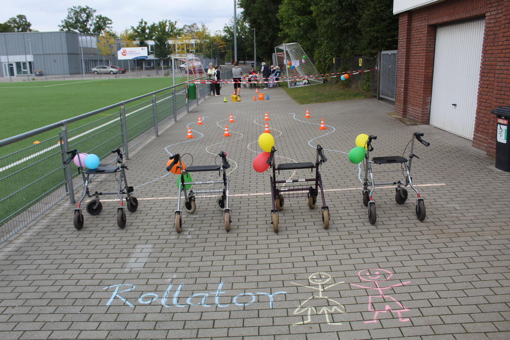 Die Fußballabteilung war mit einem Mitmach-Angebot vertreten. Die Radgruppe stellte wieder einen tollen Radparcours auf die Beine. Auch die Schwimmabteilung durfte natürlich nicht fehlen: An ihrem Stand wurde fleißig mit einem Pool und schwimmenden Tischtennisbällen experimentiert. Nicht im Wasser und dann doch auch etwas größer waren die Bälle, mit denen die Herausforderungen unserer Basketballabteilung gemeistert werden mussten. Geschicklichkeit war aber nicht nur bei unterschiedlichen Ballsportarten gefragt, der Rollatorparcours für Jung und Alt verlangte unseren Besuchern ebenfalls einiges ab.